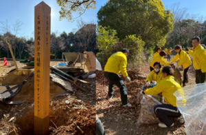 1月第2例会 CN70執念記念事業:佐鳴湖上段公園いろはかえで植樹(2026/01/23)毎年恒例の佐鳴湖上段公園で、秋から冬にかけて落ちた落ち葉を拾いを行い、70周年記念事業として浜松ライオンズの記念柱を建てました。寒波襲来の寒い朝でしたが、総勢50名近い会員が、落ち葉拾いに汗を流しました。 |